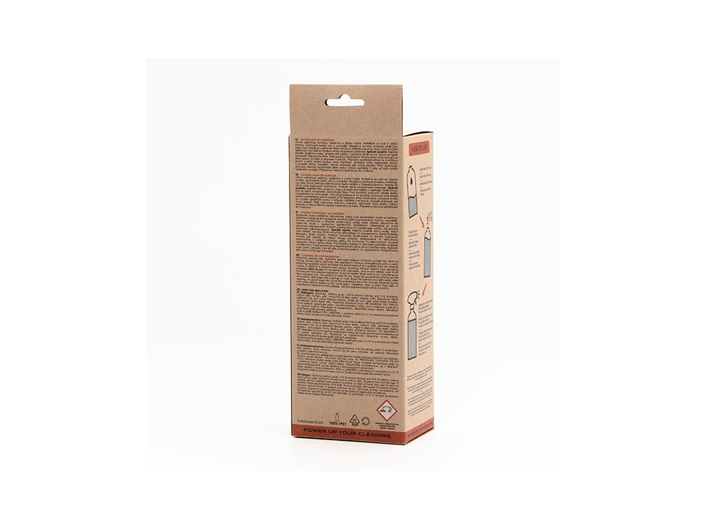 Všechny složky jsou biologicky odbouratelné a šetrné k životnímu prostředí. Láhev je vyrobená z recyklovaného plastu a umožňuje snadné a pohodlné opakované použití. Odpadá tak tahání těžkých lahví s čisticími prostředky a zároveň pomáhá šetřit planetu od plastů. Díky kombinaci účinných složek si čisticí sada snadno poradí se všemi nečistotami, prachem a zbytky mýdla z různých typů povrchů.