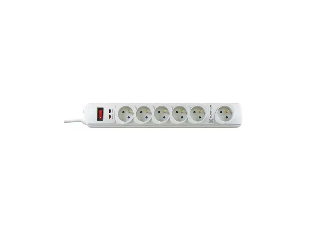 Powerton ENERGY PLUGIX, 3m, 6 zásuvek, bílá, LED indikace