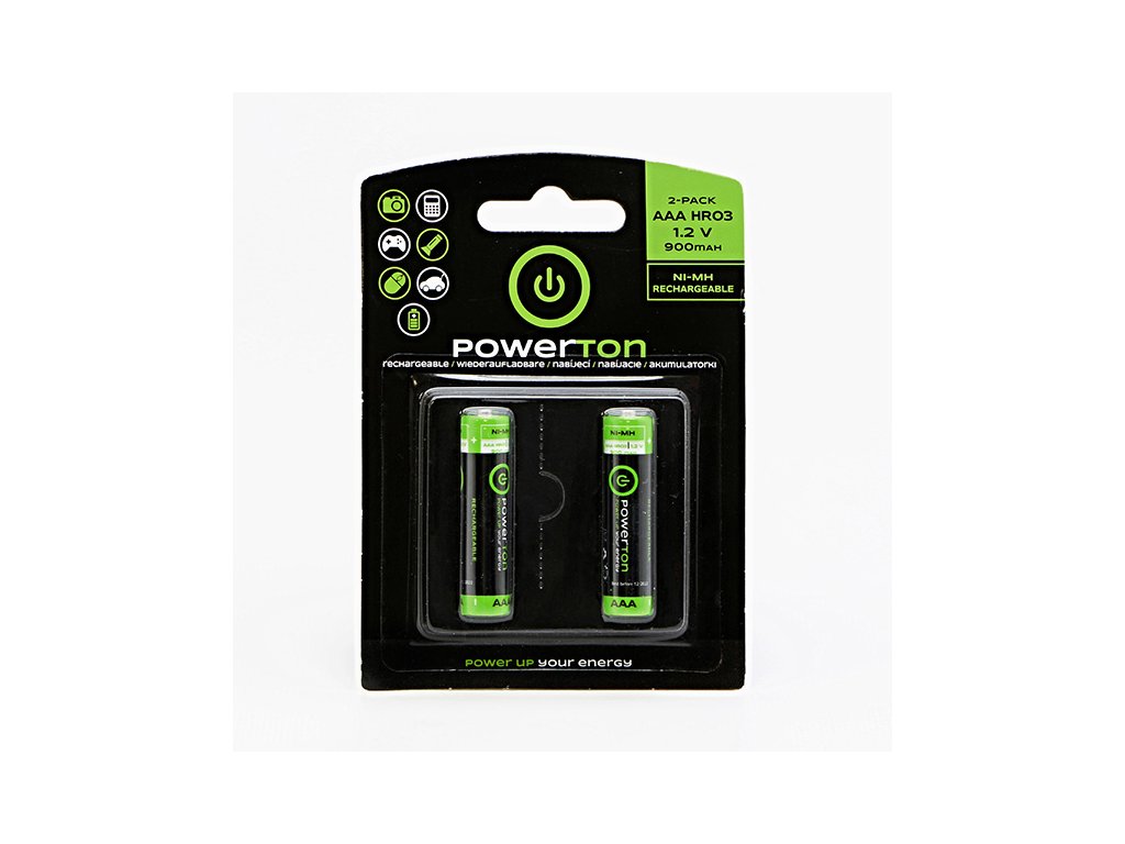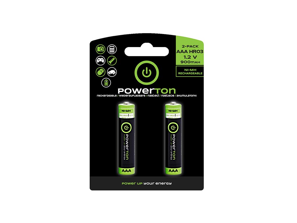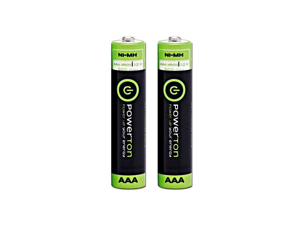 Powerton ENERGY RECHARGE PLUS nabíjecí baterie AAA (hr03) 900mah, 2-pack jsou určeny pro použití v zařízeních jako jsou přenosná rádia, MP3 přehrávače, fotoaparáty, dálková ovládání pro televize a DVD přehrávače. Vhodná jsou pro použití do hraček, hodin, kalkulaček, gamepadů, svítilen, myší.