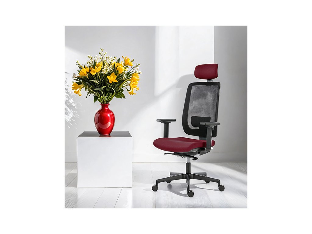 Výškově a úhlově nastavitelná opěrka hlavy slouží k podpoře hlavy a krku. Její hlavní funkcí je minimalizovat napětí a tlak na krční páteř, což přispívá ke snížení bolesti. Opěrka umožňuje nastavit její polohu a sklon vzhledem k sedátku křesla a umožňuje tak individuální přizpůsobení podpory hlavy a krku.