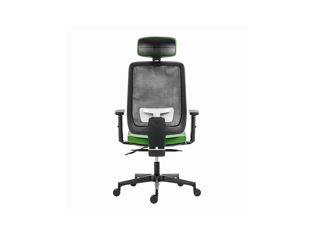 Synchronní mechanismus umožňuje synchronizaci pohybu sedáku a opěráku, takže se obě části pohybují současně v poměru 2:1. To znamená, že když se sedák posune o jeden centimetr dopředu, opěrák se posune o dva centimetry dozadu. Tento synchronní pohyb je nastavitelný a umožňuje pohodlné a ergonomické sezení. Zaaretovat jej můžete ve čtyřech pozicích. Při použití tohoto synchronního mechanismu s automatickým nastavením síly protiváhy podle tělesné hmotnosti uživatele se opěrák automaticky přizpůsobí Vašemu pohybu, aby poskytl optimální podporu zad a krční páteře. Pomáhá tak snížit únavu, která vzniká při sedavém zaměstnání.