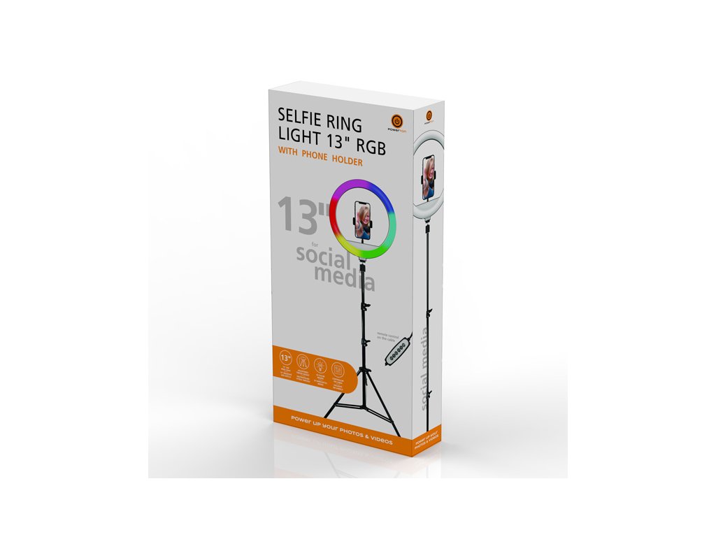 Powerton LIFE RING LIGHT, kruhové světlo 13", nastavení barev a svítivosti, držák telefonu a stativ, DOPRODEJ