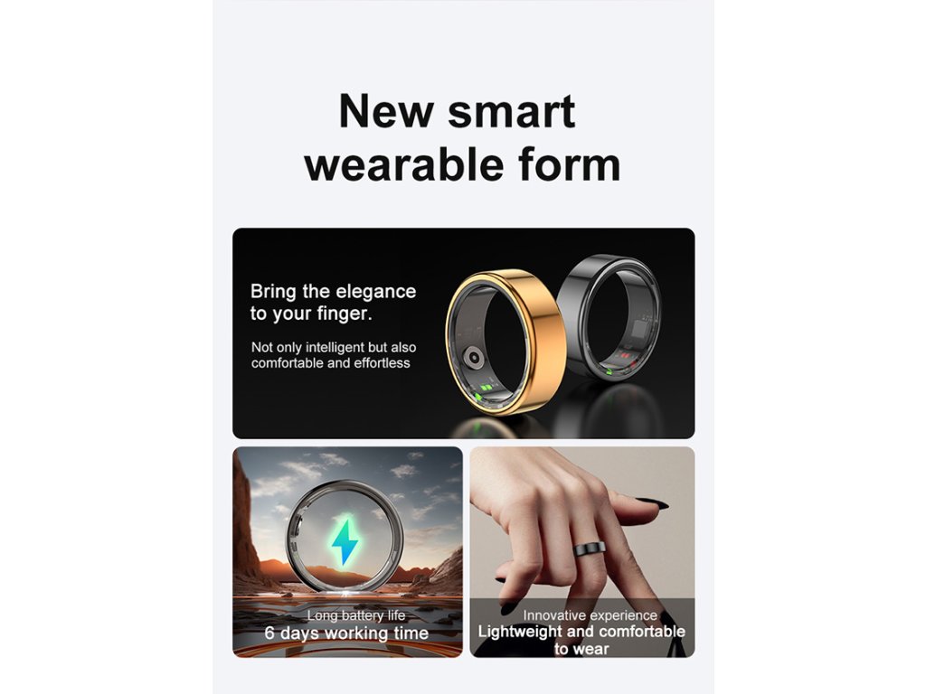 Určitě znáte chytré telefony, sluchátka, hodinky i náramky, ale co takhle chytrý prsten? Powerton Vám přináší vstupní bránu do monitorování zdraví - nový chytrý prsten Powerton SMART RING. S prstenem Powerton budete mít vždy přehled o vašem zdraví - měření stresu? Okysličení krve? Tep? Monitorování spánku? A co takhle kroky a sportovní režimy ? ANO! Pomocí aplikace Qring, která je volně ke stažení můžete monitorovat vše, zaznamenávat statistiky, nastavovat si dobu měření a nebo měřit individuálně. V aplikaci najdete spoustu sportovních režimů, kdy se vám snadno zobrazí spálené kalorie, ušlé kroky atd. Prsten se připojuje pomocí Bluetooth k vašemu telefonu, ale nebojte se - není potřeba mít telefon stále u sebe, všechna data se ukládají a po znovu připojení se Vám nahrají do aplikace v telefonu.Monitoring spánku